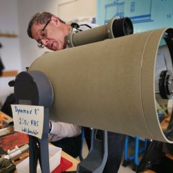 Auf dem Gebrauchtmarkt gab es wieder allerlei zu entdecken. Neben diversen Montierungen war auch eine modellierte Mondoberfläche aufgebaut, um verschiedene Schatteneffekte bei Aufnahmen zu simulieren. Aber auch Handy-Halterungen am Teleskop wurden gezeigt. Dabei soll das Smartphone nicht die DSLR-Kamera ersetzen, sondern nur Geschmack auf mehr machen. Auch für öffentliche Vorführungen, bei denen die Teilnehmer mit ihrem Smartphone erste Ergebnisse schnell und einfach erzielen können, sind dafür geeignet. Auf jeden Fall machte die Celestron-Halterung NEXYZ einen soliden Eindruck, so dass man keine Angst um sein Handy haben musste. Auch Spektive und Großferngläser wurden in größerer Menge gezeigt. Allerdings war die Abbildungsqualität der gebrauchten Exemplare oftmals minderwertig. Insgesamt enttäuschte der Gebrauchtmarkt ein wenig, da hier relativ wenige Privataussteller den Weg nach Essen gefunden hatten.
