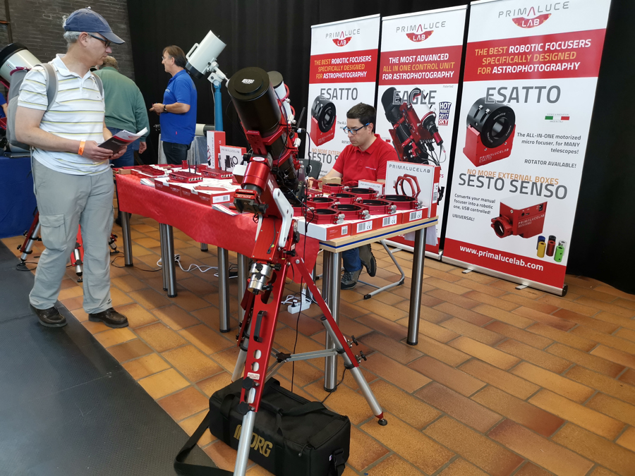 Als neuer Hersteller präsentierte sich PrimaLuceLab (https://www.primalucelab.com) auf der ATT. Hier arbeitet man an der automatisierten Beobachtung und bietet dazu die entsprechenden Produkte an. So konnte man beispielsweise mit dem EAGLE im Jahr 2017 eine Hot-Product-Auszeichnung in dem Astronomie-Magazin Sky&Telescope erreichen. Der EAGLE ist dabei ein Computer im Industrie-Design, welcher direkt mit in die Beobachterplattform integriert wird. Damit wird der normale Kabelsalat auf ein Minimum reduziert und die Montierung kann komplett remote mittels WLAN über eine bereits installierte Planetariumssoftware angesteuert werden. Ein Handcontroller wird dann nicht mehr benötigt. Zusätzlich kann die Astrokamera kontrolliert und die Bildersequenz angestoßen werden. Auch das Autoguiding kann dieser Rechner natürlich über z.B. PHD2Guiding übernehmen. Als neues Produkt wurde der Autofokussierer ESATTO vorgestellt, der eine automatische Nachführung der Fokussierung ermöglicht und an beliebige Teleskope adaptiert werden kann. Ein wichtiger Punkt bei der Realisierung einer vollautomatischen Aufnahmetechnik.