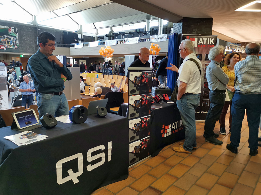 Traditionell war der Hersteller Celestron (https://www.celestron.com) im großen Ausstellungsraum vertreten und machte mit "Ready for the Moon" Werbung für 50 Jahre Mondlandung. Hier standen die RASA-Teleskope mit Schmidt-Fotoprinzip im Vordergrund. Diese Rowe-Ackermann-Schmidt-Astrographen bieten ein sehr schnelles Öffnungsverhältnis von ca. 1:2 (hängt von der Öffnung ab) und ein voll korrigiertes Gesichtsfeld für Astroaufnahmen. Inzwischen gibt es die RASA-Teleskope in 8", 11" und 14". Sie erfreuen sich immer größerer Beliebtheit, obwohl man mit ihnen nicht mehr visuell arbeiten kann. Etwas schüchterner, aber immerhin mal wieder mit dabei, präsentierte sich der zweite Schmidt-Cassegrain-Anbieter Meade (https://www.meade.com) auf der ATT. An einem kleineren Stand wurde das neue LX85 ACF, inklusive parallaktischer Montierung vorgestellt. Das ACF ist bereits korrigiert, so dass mit dieser SC-Optik auch fotografisch sofort losgelegt werden kann. Auf einen größeren Fuhrpark von Geräten wurde im Gegensatz zu früheren Messen verzichtet.