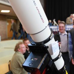 Dieses Jahr wurden noch mehr Vorträge angeboten, als in den Vorjahren. Parallel zu dem normalen Veranstaltungsprogramm berichtete Baader Planetarium über "das Licht der Sterne" und das "Celestron 14 EDGE-HD Teleskop". Letzteren Vortrag besuchte die kleine AVL-Delegation denn auch, um sich über die Möglichkeiten eines Astrografen mit Vollformat-Anspruch zu informieren. Christoph Kaltseis aus Österreich stellte seine Ergebnisse und Erfahrungen vor, die er mit dem fotografisch korrigiertem Teleskop erreicht hat.