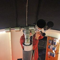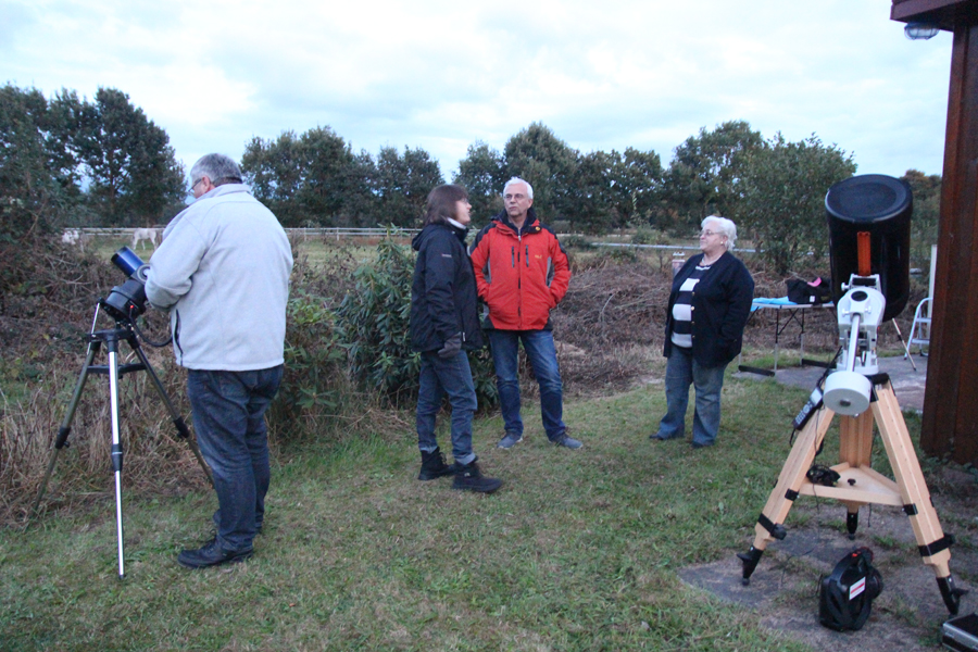Einige Besucher trudelten ebenfalls nach und nach ein. Allerdings nicht in der Menge, wie es die AVL normalerweise gewohnt war. Das lag, wie bereits erwähnt, sicherlich am Wetter während diesen Tages. Zusätzlich fand auch noch ein Länderspiel der deutschen Fußballnationalmannschaft zur WM-Qualifikation statt, was wohl auch einige Interessenten abgehalten haben dürfte. Trotzdem hatten die AVL-Mitglieder alle Hände voll zu tun, um die Fragen der Teilnehmer zu beantworten. So wurden Eva und Holger Rentzow nicht müde, um besonders den Jugendlichen den Sternenhimmel näherzubringen. Aber auch Ernst-Jürgen Stracke wurde es nicht langweilig in der kleinen Sternenwarte, die sich hoher Beliebtheit erfreute.
