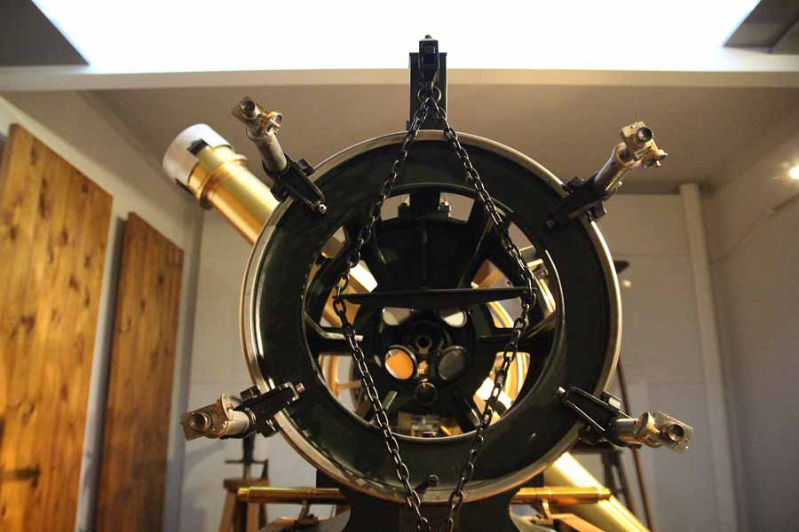 Am dritten Tag wurde erst einmal tagsüber Berlin besichtigt, da wir erst abends einen Termin bei der Wilhelm-Foerster-Sternwarte sowie dem Planetarium am Insulaner hatten. Aufgrund des schönen Wetters wurde eine Schiffstour unternommen und Regenschirme entfremdet, da die Sonne erbarmungslos brannte. Ohne Sonnenbrände erreichten wir am Nachmittag die Hackeschen Höfe, die Zeit zum relaxen boten. Vor dem nächsten astronomischen Event ließen wir es uns noch in einem Biergarten gutgehen, bevor es zur Abendvorstellung "Flieg mich zum Mond" des großen Planetariums am Insulaner ging, das immerhin 300 Sitzplätze anbietet. Der Projektor konnte diverse Effekte an die Decke zaubern, was musikalisch eindrucksvoll untermalt wurde. So drangen wir beispielsweise in den Rosetten-Nebel komplett ein oder schwebten mit der ISS über die Erdoberfläche im Weltraum. Nach diesem stimmungsvollen Programm, waren wir eingestimmt auf die anschließende Mitternachtsführung der Wilhelm-Foerster-Sternwarte. Sie beherbergt u.a. den Bamberg-Refraktor aus dem Jahr 1889 mit einer Öffnung von 314 mm und einer Brennweite von 5 m. Wir durften durch den Refraktor den Saturn und den Kugelsternhaufen M13 betrachten. Beide Objekte wurden mit 280facher Vergrößerung dargestellt, was aufgrund der Luftunruhen die maximal mögliche Vergrößerung darstellte. Dies bildete einen schönen Abschluss eines wiederum recht ereignisreichen Tages.