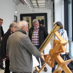 Am ersten Tag nach der Ankunft hielt sich das Wetter nach wie vor standhaft, was gleichzusetzen war, mit weiteren Regenfällen. Da wir aber einen Termin in Göttingen hatten, beim Max Planck Institut (MPI) für Sonnensystemforschung, spielte dies keine Rolle. Dort waren wir ja überwiegend im Gebäude und brauchten keinen Sonnenschein. um über selbige zu reden. Das MPI in Göttingen beschäftigt sich, wieder der Name schon sagt, vornehmlich mit unserem Sonnensystem. Dabei steht die Sonne, die Planeten und alle Monde unseres Sonnensystems im Vordergrund. Kometen und Asteroiden gehören ebenfalls zu den zu untersuchenden Objekten. Ziel ist es, zum einen die Vorgänge im Sonnensystem zu untersuchen und in theoretischen Modellen zu beschreiben. Dazu werden diese Vorgänge auch in Computern simuliert. Zum anderen werden aber auch wissenschaftliche Instrumente gebaut, die spezielle Körper aus dem Weltall untersuchen. Daher ist man auch an der ESA-Mission Rosetta beteiligt, die sich auf dem Weg gemacht hatte, um im Juli 2014 auf dem Kometen 67P/Churyumov-Gerasimenko zum ersten Mal zu landen. Das Institut enthält drei Fachabteilungen: Planeten und Kometen, Sonne und Heliosphäre sowie das Innere der Sonne und Sterne. In der Eingangshalle waren drei große Bilder angebracht, die diese drei Abteilungen widerspiegelten. Dort war auch der Nachbau der Rosetta-Sonde zu bewundern sowie die Kometennachbildung von 67P/Churyumov-Gerasimenko, auf dem die Landeeinheit Philae der Rosetta-Mission sich derzeit befindet. Den Verlauf der Landemission konnte man ebenfalls an diesem Nachbau erkennen, da die Landeversuche und der Lander selbst dort maßstabsgetreu aufgezeigt wurden. Des Weiteren durften wir beim MPI die Laborräume besuchen und nahmen viel Interessantes und Wissenswertes mit. Hierüber wird noch ausführlich in der HiPo berichtet werden.