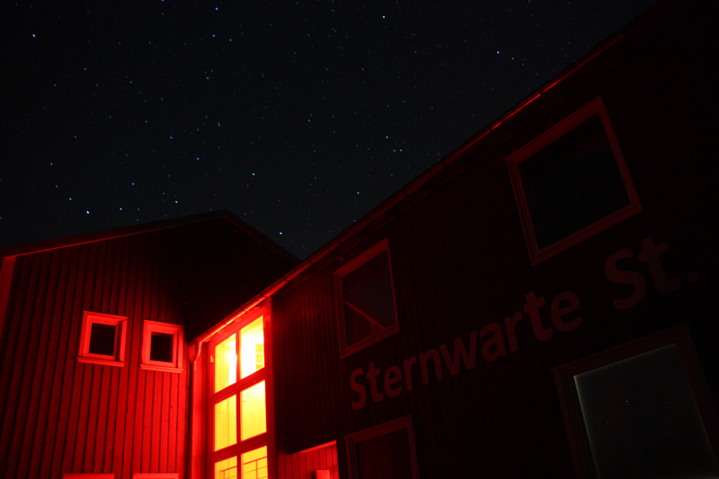 Am Abend war das Wetter leider immer noch neblig und regnerisch, so dass wir als Ausweichtermin eine gegenseitige Vorstellung in der Sternwarte Sankt Andreasberg eingeplant hatten. So stellte uns der erste Vorsitzende Utz Schmidtko die Sternwarte ausführlich vor, die man auch unbedingt weiterempfehlen kann: verschiedene Säulen gestatten dem Hobbyastronomen eigene Montierungen und Gerätschaften dort selbst zu betreiben, inkl. entsprechender Stromversorgung. Eine eigene Kuppel mit fest verbautem Teleskop ist hingegen noch in Planung. Wir haben die AVL dort ebenfalls würdig vertreten, so dass man uns jetzt im Harz, aber auch bei den Sternfreunden Hattingen besser kennt. Der Abend endete in der gemütlichen Kellerbar bei Musik vom mitgebrachten iPod und einem gegenseitigen Austausch.