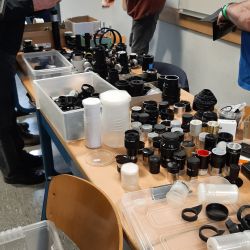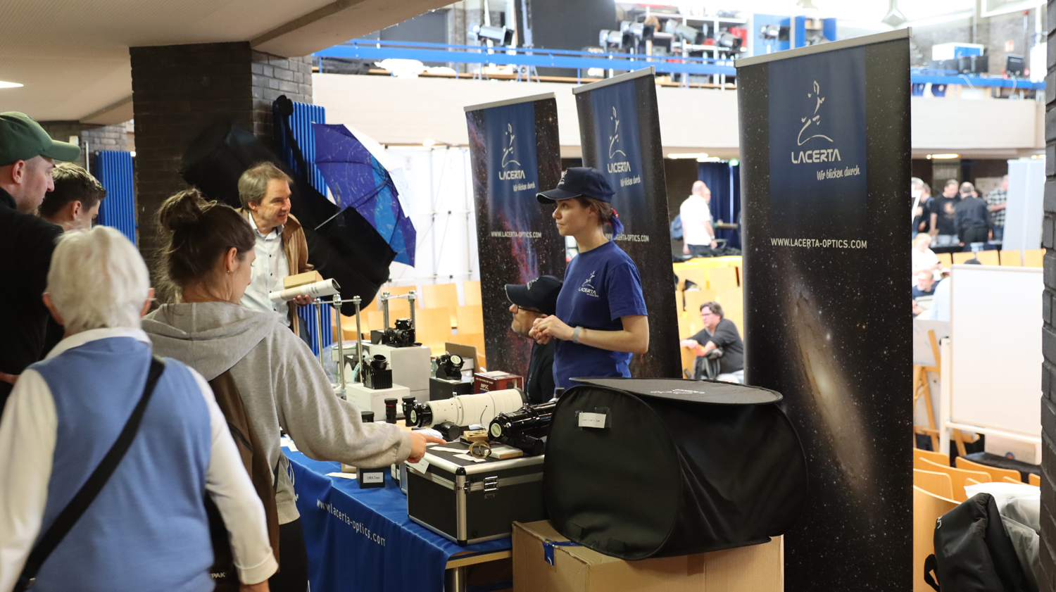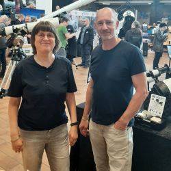 Aber auch in den anderen Hallen waren jede Menge Anbieter vertreten. So stellte Teleskop-Service das Seestar S50 von ZWOptical aus, was ein Messe-Highlight war und vollautomatische Bildaufnahmen ermöglicht. Des Weiteren waren die Harmonic-Drive-Montierungen von ZWOptical ein Hingucker, dessen rote Farbe sehr gut mit den RedCat-Teleskopen von William Optics harmonisierten. Weitere Refraktoren von Askar, ToupTek-Kameras und die eigene Refraktoren- und Newton-Reihe waren ebenfalls präsent. Bei Astroshop wurden neben dem Seestar auch andere automatische Sternwarten wie Vespera und Dwarf präsentiert. Auch die Universe2go-Lösung gibt es noch und wurde inzwischen überarbeitet. Sie kann nun auch mit neuen Smartphones verwendet werden.
